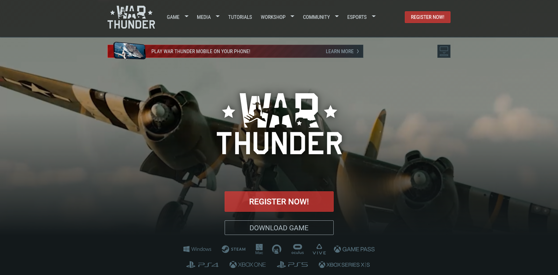 The Blowfish example website has an animated background that I really wanted to impliment for this site. When I first saw it, it reminded me of video game websites that showcase their game or a trailer in the background of the landing page. The two examples I took express inspiration from were of War Thunder and Nikke: Goddess of Victory — both of which had a cinematic video running behind their logo or download button.