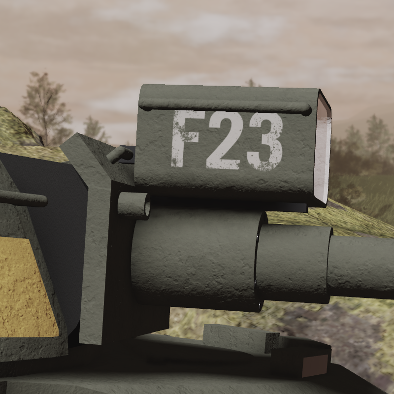 It was just a random, dumb name I made to put on the tank. I was doing the same to other armored vehicles I was making through 2022 and 2023 — Plastering dumb names, mascots, and insignias onto their hulls to give them each some carefree charm. Best example of this are three IFV’s that I’ve made, then subsequently branded the “Shooter Scooter”, “Inali”, and “Depresso Expresso” just out of some sort of bland comedy.